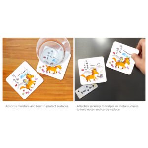 - Made from water-absorbant paper mounted on magnets, these coasters protect your surfaces from heat and moisture, while doubling up as fridge magnets – perfect for keeping notes, photos or reminders in place.